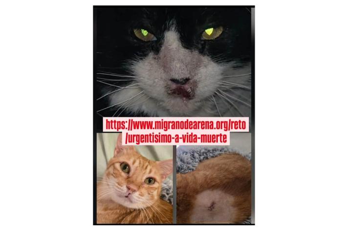 Rescate a Nilo al borde de la muerte y llevo 4 meses haciendo todo lo posible para que nilo se recupere,ahora necesita hacer exodoncia y tiene tratamiento de por vida por el hipertiroidismo...a parte de : Bronquitis crónica hipertiroidismo Calicivirus agresivo Herpesvirus Anorexia felina(CAQUEXIA)1kg pesaba,ahora está en 2,700kg De ahí su cuenta teaming,para poder solventar sus gastos mensuales de alimentación, analiticas de control, felimazole y un sin fin de tratamientos para supervivencia. Actualmente 5 de marzo de 2023,el gasto de nilo es este; Cronicare 27€ Famciclovir 53€ Vidalta 15mg 86€ Predicortone 14€ Bupack 22€ Lysinviral 16€ Impromune 33€ Analiticas completas+ urea,crea y T4 los dos.70€ Laserterapia 65€,Stomodine 20€,el nilo se gasta sus teaming en sobres de sensory y instictive y NO llega al mes,sin contar las sopas de schesir y la leche de gatito.Empapadores 2 paquetes al mes/dodotis para los traslados al vete
