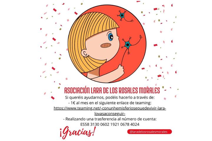 Lara sufrió un ictus con daño cerebral hace dos años y entre otras secuelas, aparecieron crisis de epilepsia que están dañando su hemisferio sano. Próximamente le realizarán una hemisferectomia y para ello necesita una rehabilitación intensiva al menos durante los primeros 6 meses. Las ayudas económicas no son suficientes para cubrirlas todas, por ello creamos este grupo: para ayudar a Lara en su recuperación y demostrar que con un hemisferio se puede vivir.