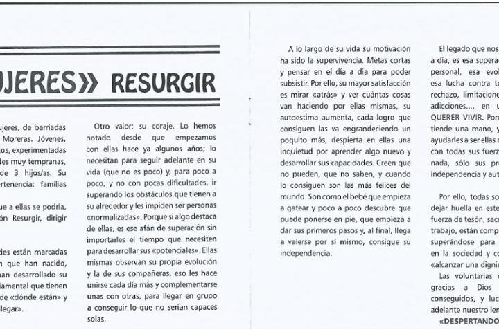 Somos un grupo de voluntar@s que formamos esta asociación sin animo de lucro para trabajar y luchar con, por y para la mujer en situación de exclusión social y su familia, dándole mayor importancia a los niños.Trabajamos con diferentes talleres de promoción para estas mujeres, queriendo darles recursos para su autopromoción, libertad, y recuperar su tan valiosa dignidad. Con los niños trabajamos en el tema educativo y de higiene, a base de ludoteca y atención personalizada con su tutor escolar.