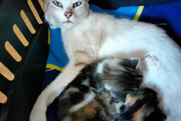 En este verano recogimos una mamá gata con tres bebés. Parió en la calle ,en un pueblo y en una zona peligrosa.Asi cuando dieron el SOS uno ya había sido atropellado.