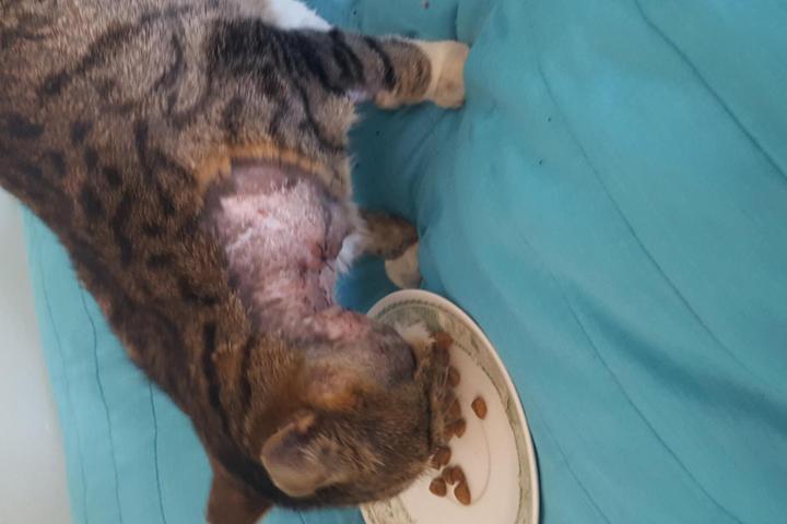 Cheluco, un gato vagabundo pero miembro de nuestras colonias, tenia una herida muy grande en el cuello y lo llevamos al hospital, le hicieron la cirugía y lo quitaron el bulto que era do forma tumor. Ahora está bien, la operación fue complicada dado que estaba al lado de la aorta. La factura subió a 350 EUROS. Por favor, hazte teamer por 1 EUR y ayudas mucho.