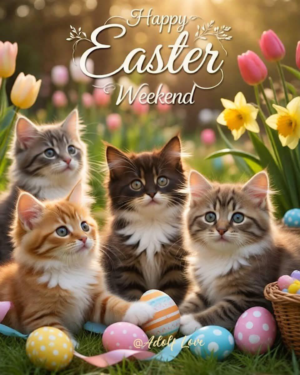 Notre benjamine Bambi, ses frères et sœurs , leur maman Oriane, tous les mimis du refuge, et leur tendre tata Josiane vous souhaitent de Joyeuses Pâques dans l’amour, l’amitié et la joie.