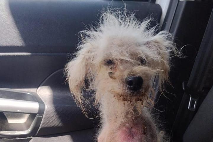 Kalua è stata trovata in condizioni difficili: una forte parassitosi le ha portato via quasi tutto il pelo e aveva una ferita antica, ma ben curata, sulla spalla sinistra. Ha anche mezza coda, ma nulla le toglie la sua incredibile voglia di vivere e la sua dolcezza infinita.