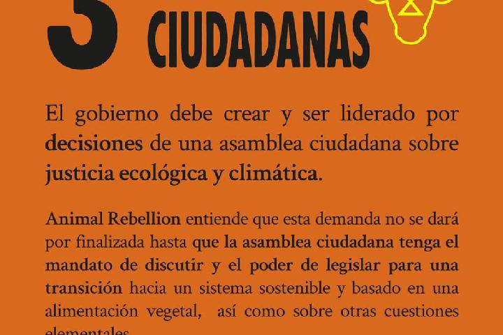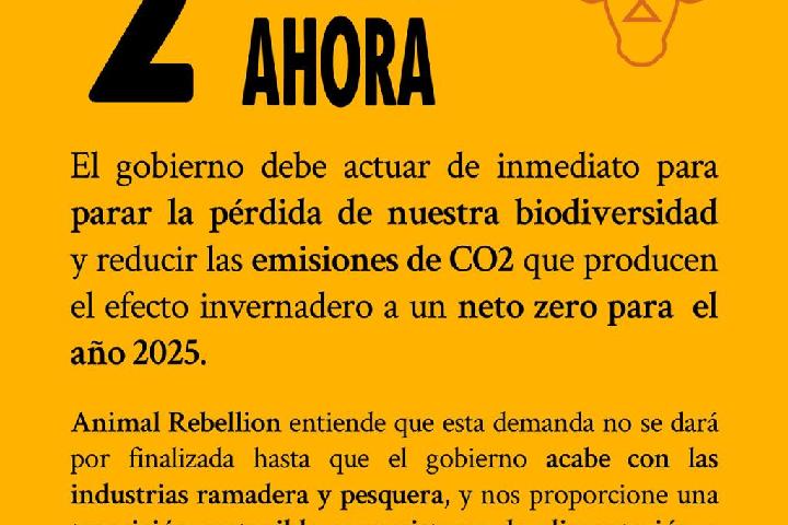 Animal Rebellion sorgeix com un MOVIMENT VOLUNTARI MASSIU que fa servir mètodes de desobediència civil NO-VIOLENTA per posar fi a les indústries d'agricultura i pesca, aturar l'extinció massiva i minimitzar el risc de col·lapse climàtic i col·lapse social. Si vols saber-ne més, ho expliquem més detalladament a les nostres xarxes socials i al web animalrebellion.org/
