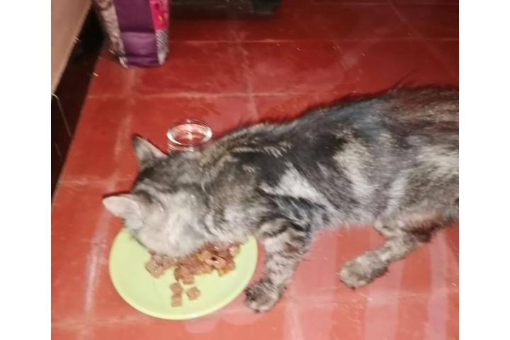 Coco es este viejo gato que se estaba dejando morir en una esquina de la calle, no podia comer solido ( ni cazar ni comer de la basura) debido al grave estado de su boca. Una gran infeccion le provocaba dolor agudo y no poder comer hizo que cada vez estuviera mas y mas debil. Lo rescatamos y lo llevamos al vete donde le diagnosticaron una grave infeccion en la boca asi como una desnutricion por no poder comer. Necesitamos operarle la boca para sacarle dientes y parar la infeccion. Tb alimentarlo