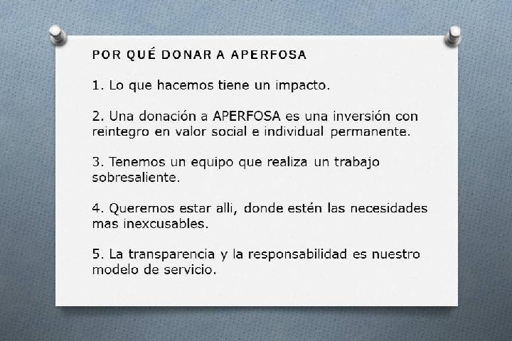 2. Una donación a APERFOSA es una inversión con reintegro en valor social e individual permanente.