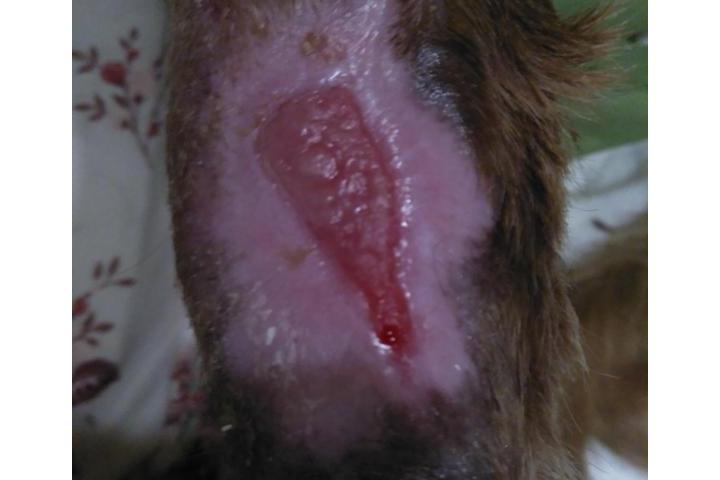 Ante todo, gracias por vuestra ayuda, Os pasamos evolución de Mico, el cual, como ya os hemos explicado en otras ocasiones, sufría un rechazo de los implantes que hubo que colocar en su columna para fijarla, cuando fue atropellado. Estos han sido extirpados con éxito. Colateralmente a la cirugía de la estirpación de los mismos, surgió una úlcera por presión en una de sus extremidades posteriores, la cual también está prácticamente curada. Como siempre, gracias por todo, por tanto...,