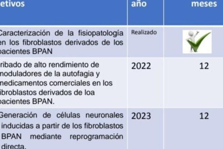 Lola es una niña de 4 años diagnosticada con una enfermedad ultra rara y neurodegenerativa por Acumulacion de Hierro en el Cerebro llamada BPAN,es causada por una mutacion del gen WDR45,que interfiere en el desarrollo del niño por lo que los niños bpan son lentes para desarrollar habilidades o nunca las desarrollan. Durante la adolescencia pierden habilidades y tienen una esperanza de vida reducida. Queremos financiar el proyecto BRAINCURE FOR BPAN para frenar la neurodegeración.