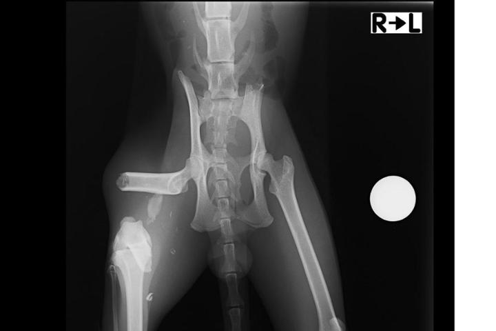 Axel es un gatito que vivía en la calle. Nos dieron aviso de que había un gato con mal aspecto y que le pasaba algo en la pata. Estuvimos intentando capturarlo durante varios dias sin éxito, ya que es un gatito desconfiado. Pero al final con paciencia pudimos cogerlo y llevarlo de urgencia a una clínica veterinaria. Allí nos mostraron la gravedad de sus lesiones. Rotura total de fémur, sin otra solución que operación urgente. Pero su analítica era desastrosa, mucha anemia e infección. No sé podía operar hasta que no estuviera más recuperado. Lleva ingresado desde el día 22 de febrero y fue ya operado el pasado jueves 7 de marzo. El presupuesto de la fijación son 685 €, más lo que ascienda su hospitalización. Agradecemos muchísimo quien pueda ayudarnos, Axel nos necesita. ¡Gracias!