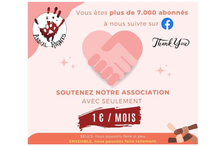 je souhaite que beaucoup de personnes s'abonne pour donner 1 euros, je n'es pas d'enfants je travaille, j'adore les animaux c'est pour celà avec rand plaisir de faire partie du groupe pour 1 euros par mois, et je continuerais à vous soutenir comme je l'ai fait hier au super u don de 200euros pas tous les mois mais dès que possible, très heureuse de faire partie du groupe