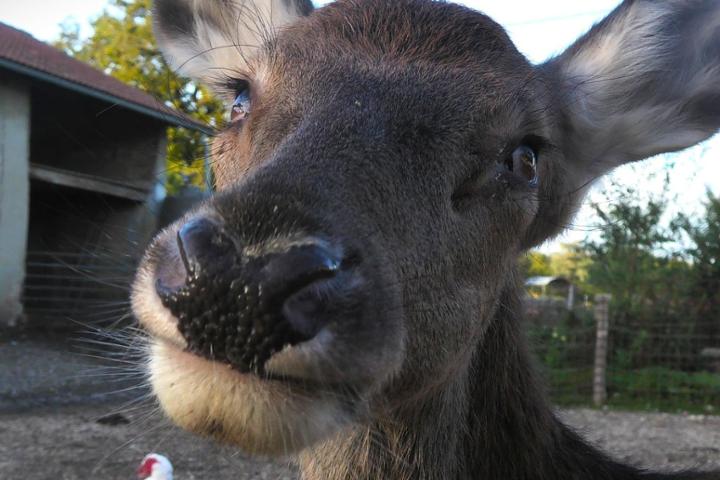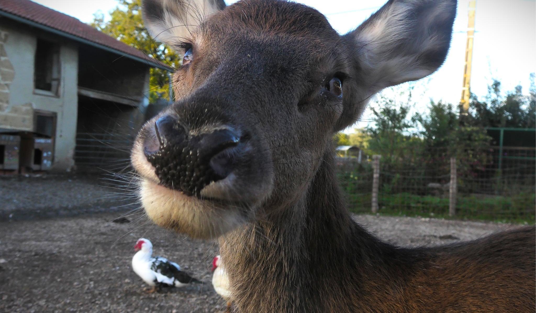 Voici l'un de nos derniers sauvetages... Le 8 septembre dernier, est entrée dans notre vie une jeune biche aveugle. Elle avait été trouvée dans une clairière, en état de choc, très déshydratée, complètement paniquée et très affaiblie. Des personnes au grand coeur l'ont secourue et ont appelé diverses structures qui ont refusé de la prendre en charge à cause de son handicap qui ne lui permet pas de pouvoir être relâchée dans la nature. Ces personnes ont tout mis en oeuvre pour lui donner une chance et nous l'ont amenée. L'examen vétérinaire montrait qu'en plus d'être aveugle, elle souffrait de divers problèmes neurologiques (manque de coordination des mouvements, problèmes de proprioception, problèmes aux sphincters, incapacité à boire seule) et de soucis aux vertèbres. Cela étant dû à un traumatisme crânien avec une atteinte profonde du cerveau ou cervelet. Le pronostic était plutôt pessimiste, nous avons attendu qu'elle reprenne des forces avant de faire les démarches administratives pour pouvoir la détenir ici afin qu'elle soit soignée et qu'elle puisse vivre malgré son lourd handicap. Elle a eu une séance d'ostéopathie. Jour après jour, avec des séances quotidiennes de stimulation, son état s'est amélioré. La proprioception est revenue, malgré sa cécité elle arrive à boire seule, se déplace de mieux en mieux lorsque je la guide avec ma voix... Elle est âgée de 5 à 6 mois, a une sacrée envie de vivre... Nous avons l'autorisation de la détenir et nous allons faire tout ce que nous pouvons pour lui permettre de s'épanouir avec son handicap. Nous l'avons appelée Sakura, qui est le nom des cerisiers à fleurs et de leurs fleurs au Japon, symbole de beauté, de pureté, de fragilité, mais aussi du renouveau... Nous remercions les personnes qui l'ont secourue et amenée, le docteur Norin Chai qui s'occupe de son suivi et qui nous aide par ses précieux conseils, le docteur François Le duc qui l'a examinée, notre ostéopathe Violette Perrier et nos bénévoles qui lui préparent un parc sécurisé et adapté à son handicap...