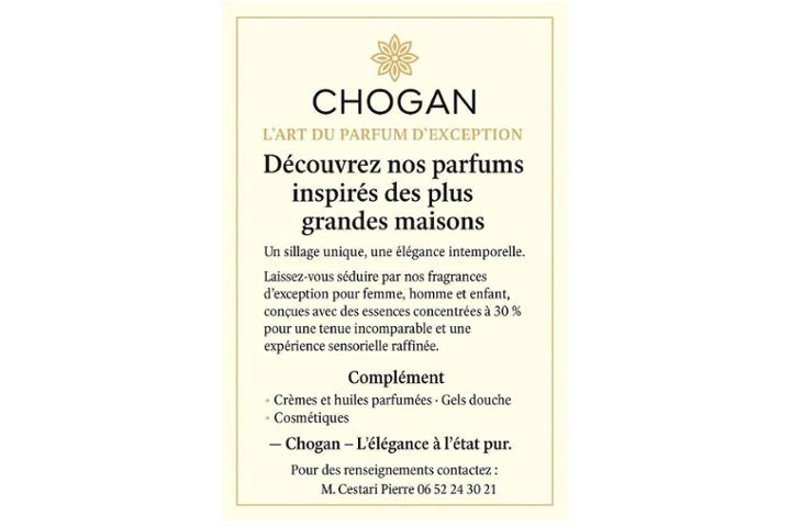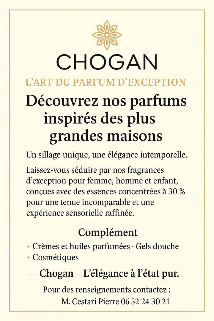 Les produits que nous a présenté Pierre, ce sont des parfums inspirés des plus grandes maisons. Si vous êtes intéressés vous pouvez contacter Gaëtan (trésorier) au 06 66 24 79 80 ou Christelle (présidente) au 06 15 61 79 48 pour que l'on vous explique le fonctionnement et vous faire part de la liste des produits qui nous sont proposés par Pierre Cestari de CHOGAN.