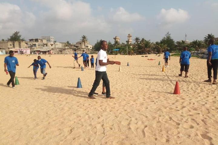 Vendredi sportif à la plage de Donaten avec les enfants de l'Institut Médico-Educatif (IME) St François d'Assise de l'ONG Miwadagbe.
