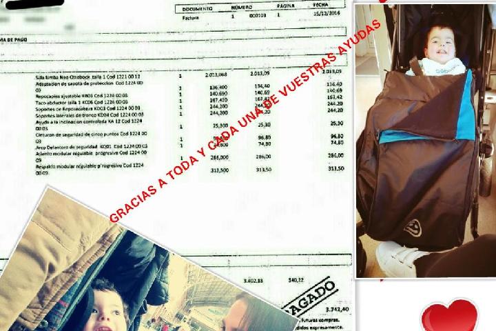 Carlos, es un niño feliz, alegre, mimoso, simpático..que desgraciadamente actualmente padece una"Tetraparesia espástica severa, epilepsia, ceguera,y un gran retraso madurativo neurológico, de carácter profundo"Después de diversas complicaciones en el hospital.Padece un 89% de discapacidad, es totalmente dependiente.Tiene muchas necesidades, que acarrean un alto coste económico,y necesitamos ayuda para poder hacer frente a ellos.Y así nuestro pequeño pueda tener una vida sana,digna y de calidad.
