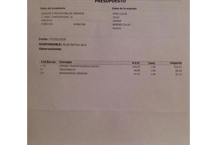 Border Collie rescatada en muy mal estado. Ha perdido un ojo, tiene desprendimiento de retina y el hueso de una pata de atrás fracturado. Hay que operarla. La operación nos cuesta 773,98 euros. Necesitamos toda la ayuda posible para pagar la factura y para difundir a esta peque, y que encuentre pronto una familia que la quiera como se merece y pueda olvidar su pasado. Para realizar donaciones: Unicaja: ES55 2103 0459 03 0010008917 Titular es Qualidice, Protectora de Herencia Concepto: Ayud