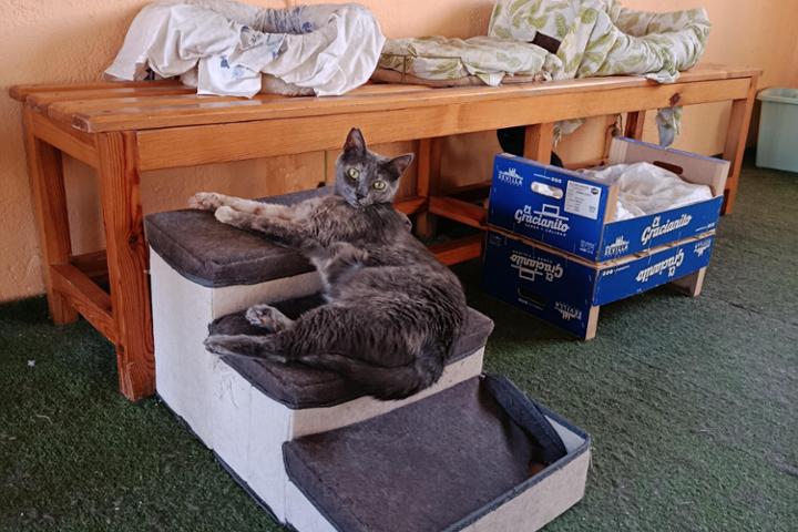 Manolita fue rescatada de una zona donde los cazadores literalmente entrenan a sus perros con los gatos.