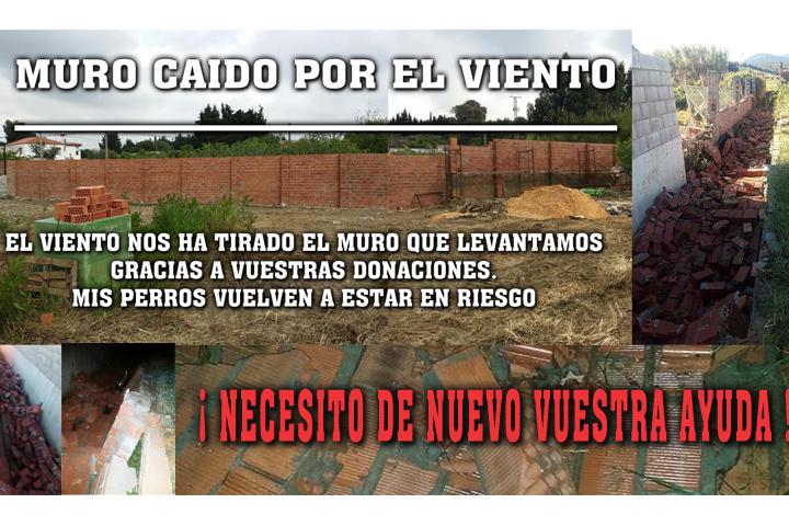 Dentro de poco llega el buen tiempo e iremos comprando materiales para volver a levantar el muro que nos tiró el viento pocos meses después de levantarlo gracias a donaciones. Lleva más de dos años tirado y los perros han visto su espacio reducido ni a la cuarta parte que tenía antes, eso provoca roces entre alguno de ellos al estar en menos espacio.