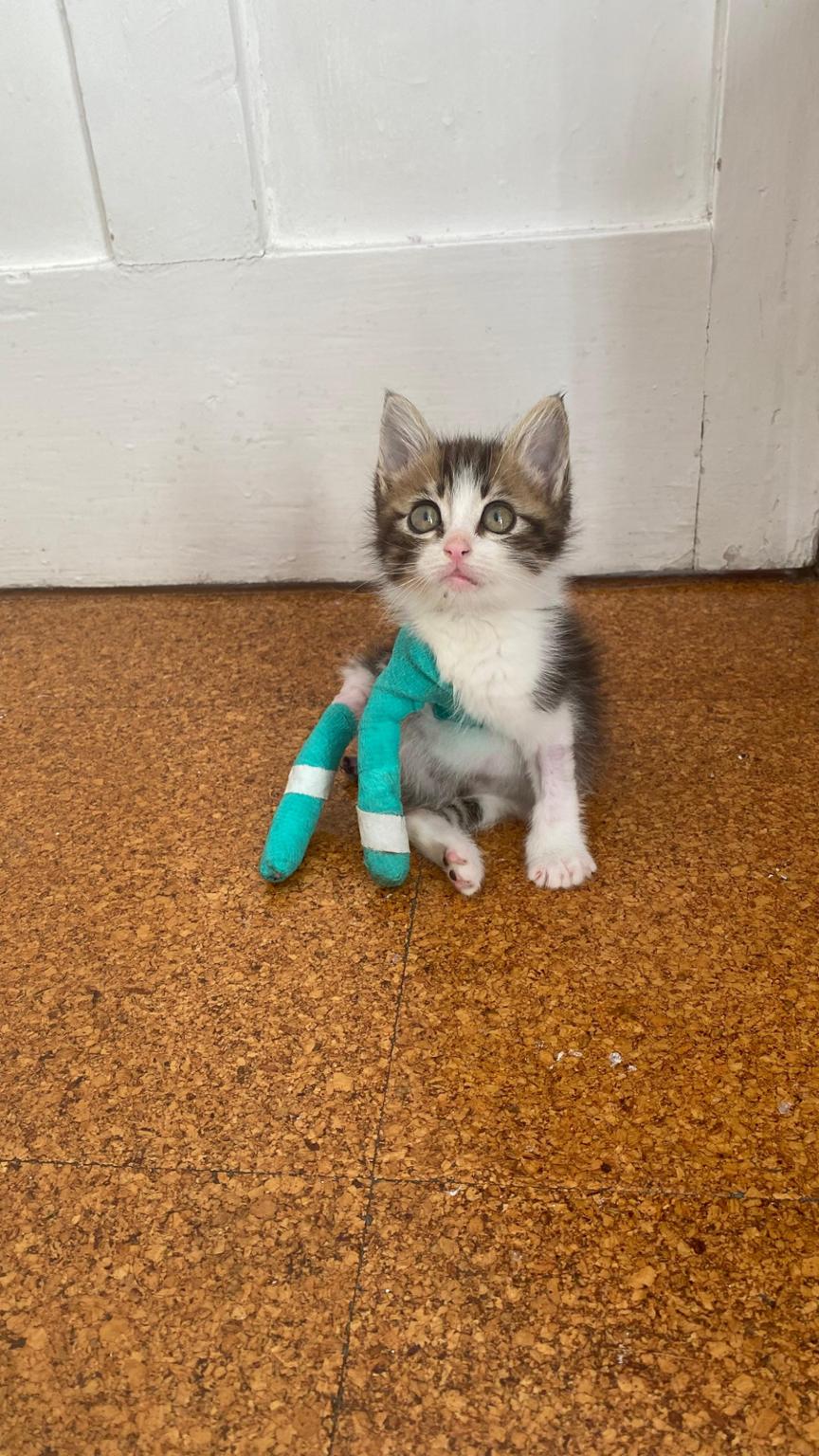 El tratamiento de láser está funcionando y está cogiendo una movilidad alucinante en sus dos patitas. Esperamos muchísimo que este tratamiento haga posible que no pierda ninguna de sus patitas. Kenzo es un gatito muy especial que le encanta jugar y corretear detrás de sus pelotitas. La semana pasada tuvimos un pequeño susto porque le tuvieron que amputar medio rabo pero la operación salió genial y él se está recuperando súper bien, es un luchador. En enlace al teaming está en mi biografía, el dinero irá íntegro a pagar gastos de sus citas en el vete y medicinas que por cierto se las toma súper bien y no se queja de nada ❤️❤️