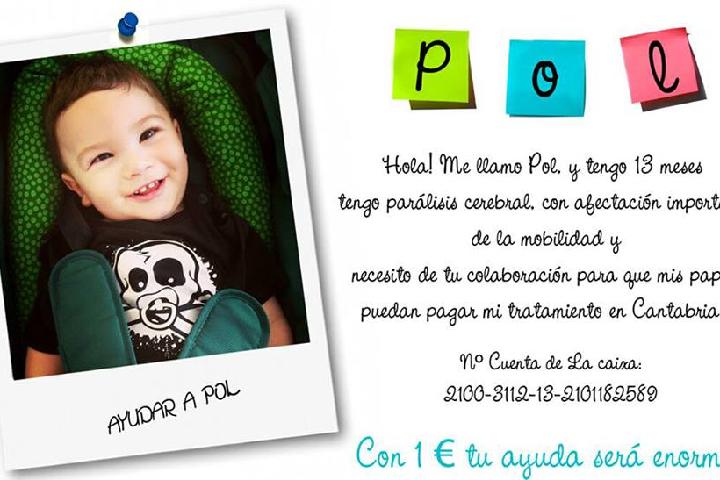 Soy Pol, nací el 25 de mayo de 2012. Tengo una grave lesión cerebral, producida por la falta de oxígeno durante mi nacimiento. Padezco fuertes crisis de epilepsia, problemas de movilidad, dolores musculares e insomnio.Gracias a todas las aportaciones he realizado todo tipo de tratamientos en España y en EEUU. Actualmente recaudamos fondos para nuevas terapias y próximas intervenciones médicas que mejorarán mi movilidad. Ayúdame a conseguir sueños. ¡Cuento con vosotros!