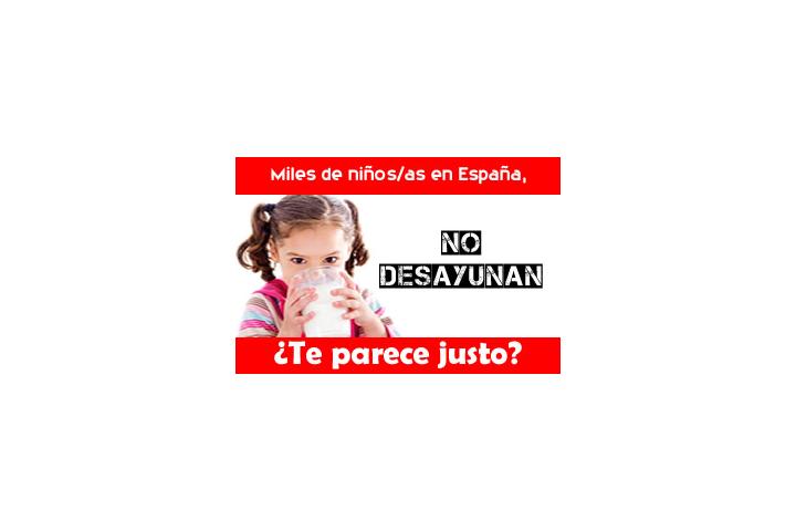 Miles de niños/as van al colegio sin desayunar, te parece justo?. El desayuno es la comida más importante del día. Un niño/a sin desayunar rinde menos en el colegio e influirá en su educación para toda la vida. Con un euro se puede conseguir 5 vasos de leche o un paquete de galletas, 1 litro de zumo et. Gracias por tu generosidad. Gracias por tu donativo