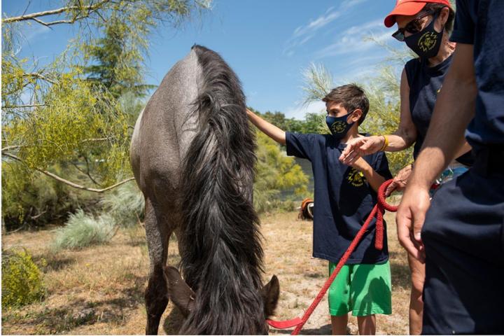 Yago, con apenas 6 meses, tuvo que permanecer ingresado durante varios años sin poder salir de su habitación en la planta 7ª del Hospital 12 de Octubre. Toda la ilusión del pequeño consistía en escuchar las sirenas de los camiones de bomberos que pasaban. Hasta que una visita nuestra nos cambió la vida a él y a nosotros. Su madre nos explica que conocernos y jugar con nosotros, ha sido "su medicina”. Desde ese día en 2016, hemos apadrinado a muchos más niños (María, Smailer, Álvaro, Ruth, Marcos, Mateo...) para quienes organizamos grandes FIESTAS con camiones de bomberos, música, castillos hinchables y una siempre divertida fiesta de espuma. Además, financiamos TERAPIAS especiales para ayudar a mejorar la salud de los pequeños guerreros. Entre otras, equinoterapia, dentro del proyecto Coge las Riendas, con beneficios como corrección postural para nuestros peques con parálisis cerebral y otros psicológicos que sacan sonrisas a aquellos con cáncer o enfermedades raras (65€/sesión).