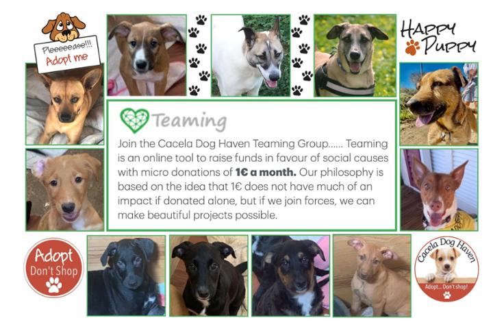 We are a private rescue centre and sanctuary for dogs that are abandoned, lost, injured, ill, abused and neglected. We rescue, rehabilitate and rehome the beautiful dogs that arrive at our door. After Vet checks, vaccinations and treatments, specific diets are planned when necessary and dogs are assessed.... cuddled and loved! No adult dog leaves our centre without first being sterilised, at our own cost. Cacela Dog Haven relies entirely on the generosity of our friends and supporters - in Portugal, there is no government financial assistance for a private centre such as ours. Any donations that we receive through Teaming would be used for dog food and Veterinary bills.