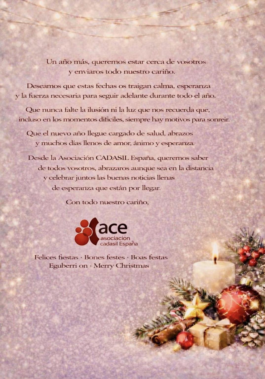En estas fechas tan especiales desde la Asociación CADASIL y en mi propio nombre, queremos parar un momento y daros las gracias de corazón. Gracias por estar, por no fallar, por vuestro apoyo constante y silencioso que, día a día, se convierte en esperanza para todas las familias afectadas por el CADASIL.