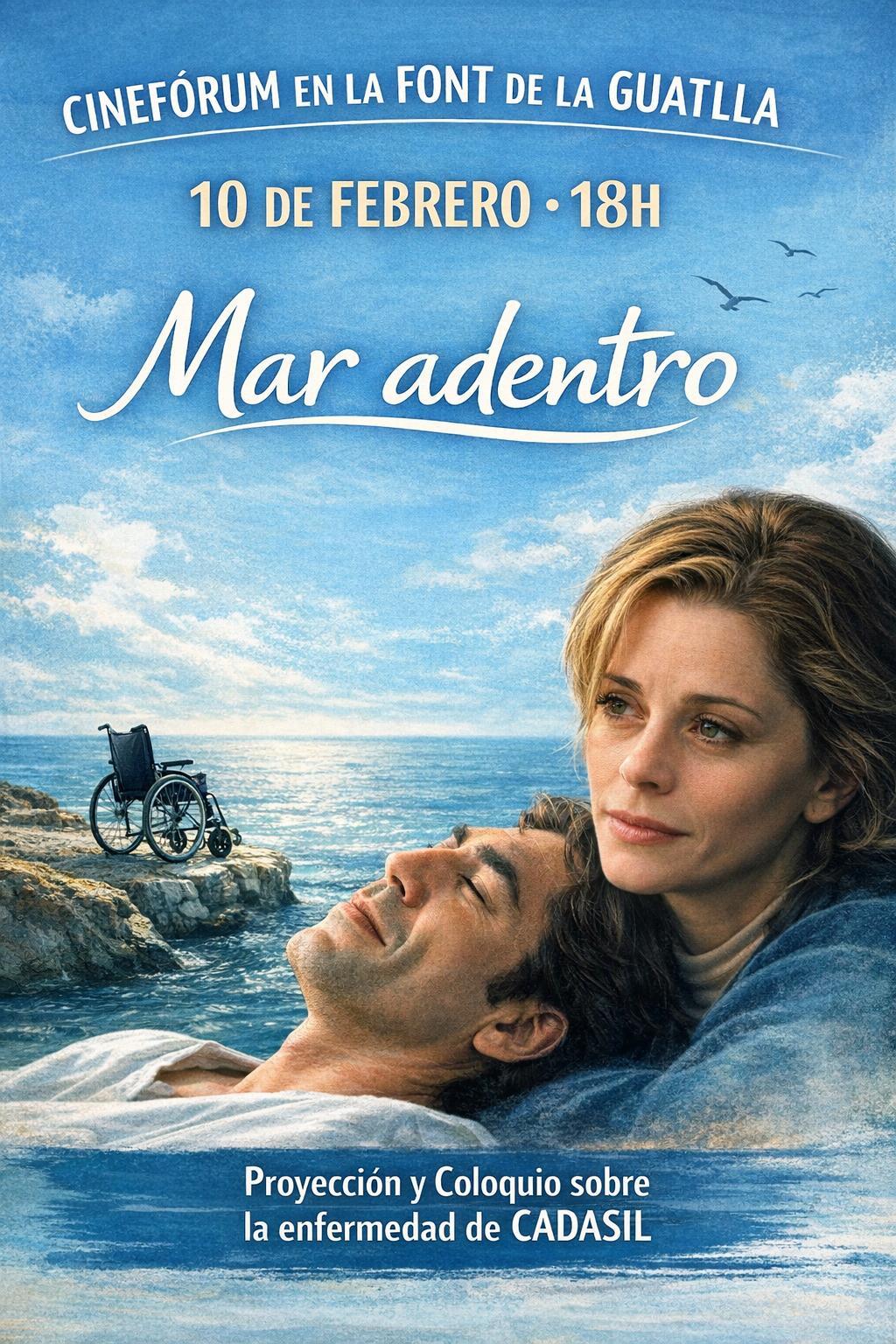 Como una manera más de visibilizar la enfermedad y generar conversación, el próximo 10 de febrero a las 18 h haremos un cinefórum con la proyección de Mar adentro y un coloquio posterior, en la Font de la Guatlla. Como siempre, estáis invitados ;)