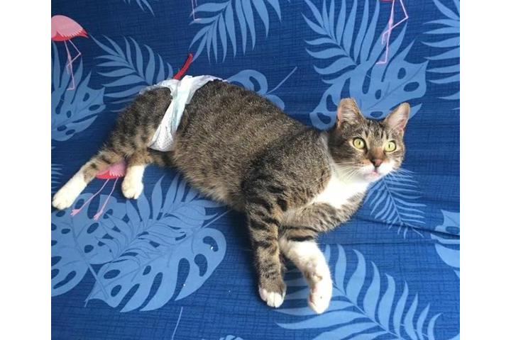 Giuly gattina con vescica neurologica e coda morta , abbandonata dentro un trasportino