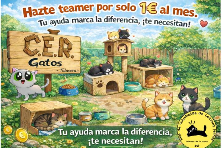 CER Gatos Talavera is a social media outreach initiative that showcases the various activities related to the community cats of Talavera de la Reina: those carried out under the municipal program for managing feral cat colonies—including actions by authorized caregivers—as well as initiatives by associations, organizations, and individuals dedicated to improving the lives of cats living on the streets. The funds raised through this Teaming group are entirely allocated to the Colony Volunteer Network to support the needs of the community cats they care for. Donations are collected through the bank account of one of the collaborating associations.