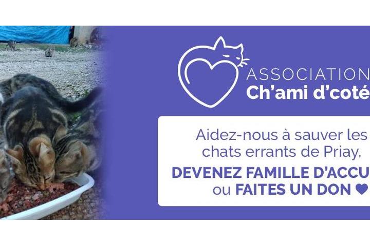 L'association Ch'ami d'côté vient en aide aux chats errants de la ville de Priay. Tous vos dons, même les plus modestes sont les bienvenus, pour assurer les frais vétérinaires des chats ! Merci !