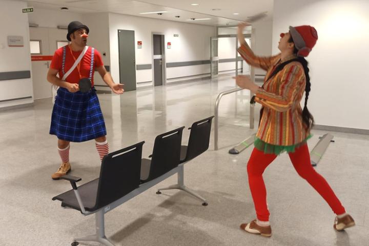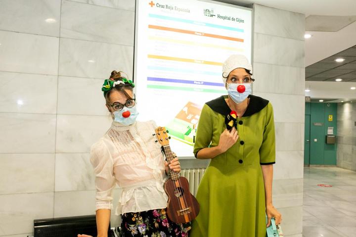 We are health clowns in Asturias. For years we have been filling corridors and rooms with color, play and joy in the paediatrics wards of the HUCA. We visit the Cruz Roja Gijón weekly, animating corridors and staff and intervening in the rehabilitation and palliative care plants for adults. On the other hand, every week we visit the Naranco residential establishment for the elderly and we have implemented a show of sensory stimulation through clowning for special education centers in Asturias.