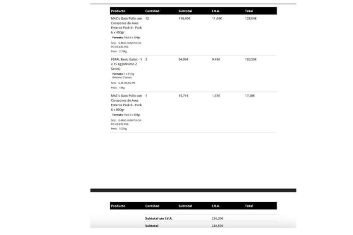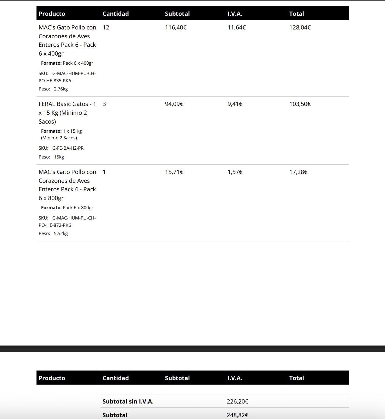Os adjunto la captura de los dos últimos pedidos en Pienso Feral.