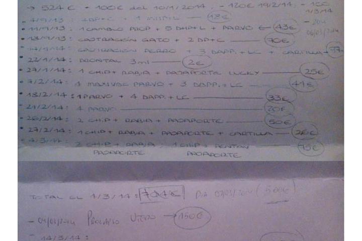 Necesitamos ayuda para poder pagar la factura del veterinario, una factura de 756 euros. Vacunas, curas, castraciones... a eso le unes el gasto del pienso y es que no podemos, no podemos pagar esta factura y si no lo hacemos, por ahora no nos atiende a ningún perrito más. Necesitamos ayuda. No tenemos ya ni para pienso, no sabemos como vamos a alimentarlos. Ayúdanos!!