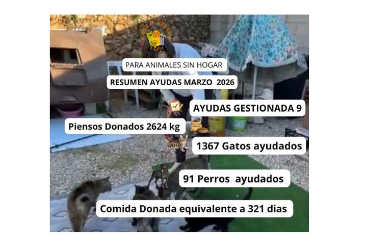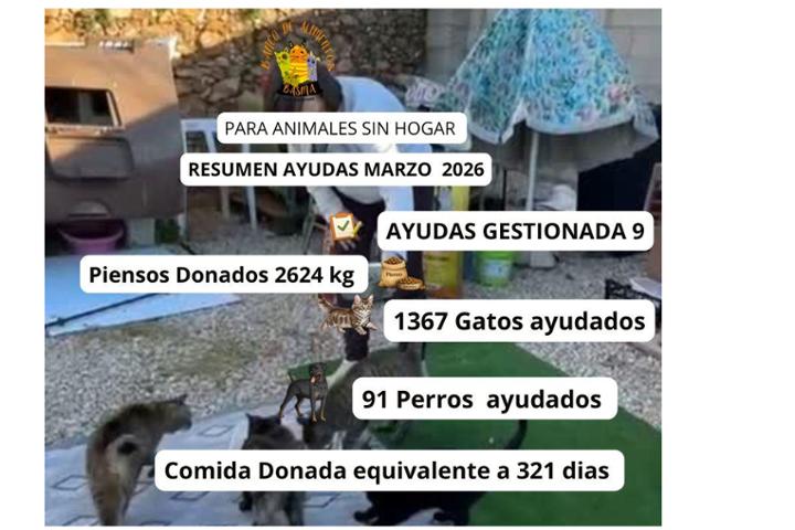 Ayuda alimentaria para: 1.458 animales (91 perros y 1.367 gatos)
