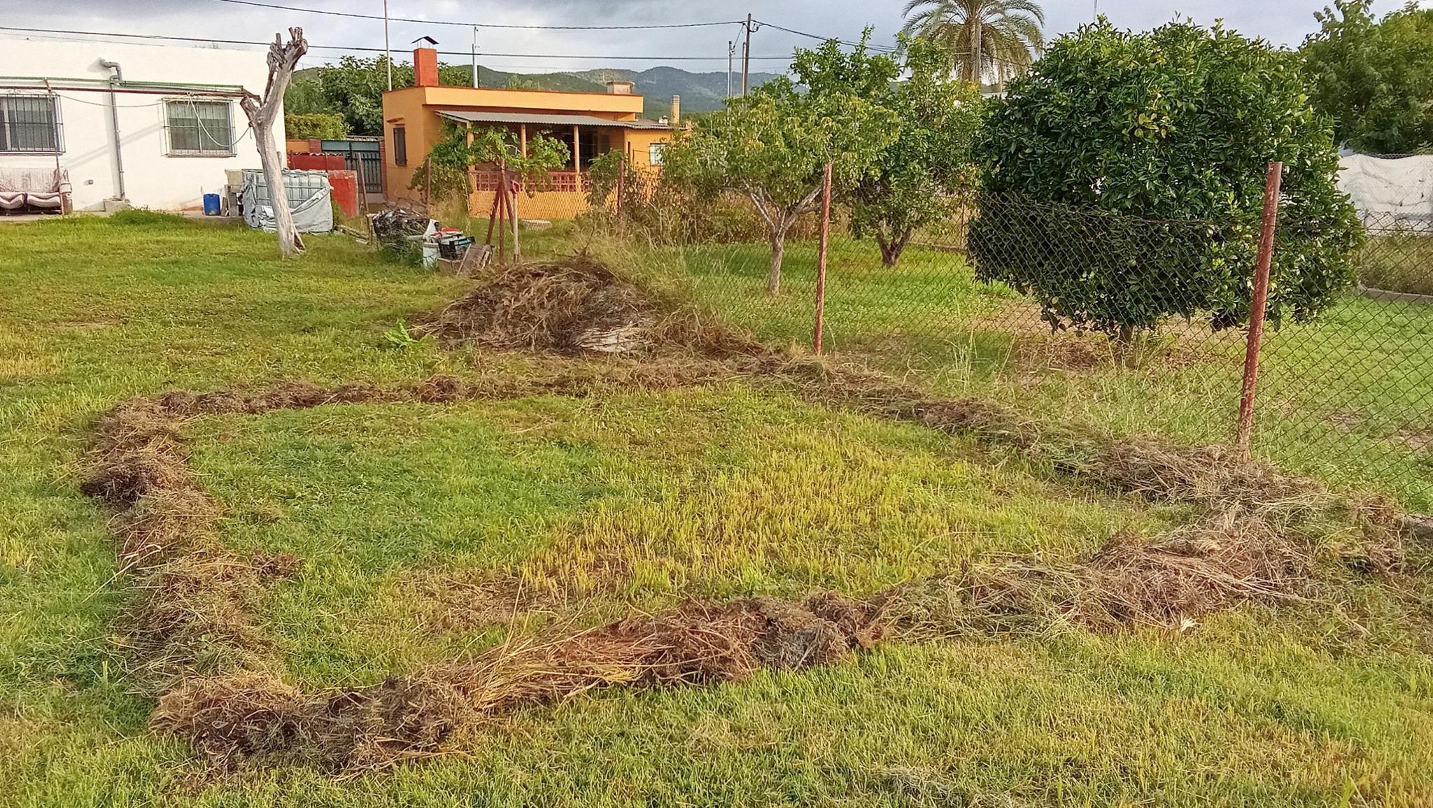 Cubierta vegetal sesgada y preparada para la siembra directa con la mezcla de semillas que ayudarán a mantener la buena estructura de este suelo y evitará la proliferación de "malas hierbas".