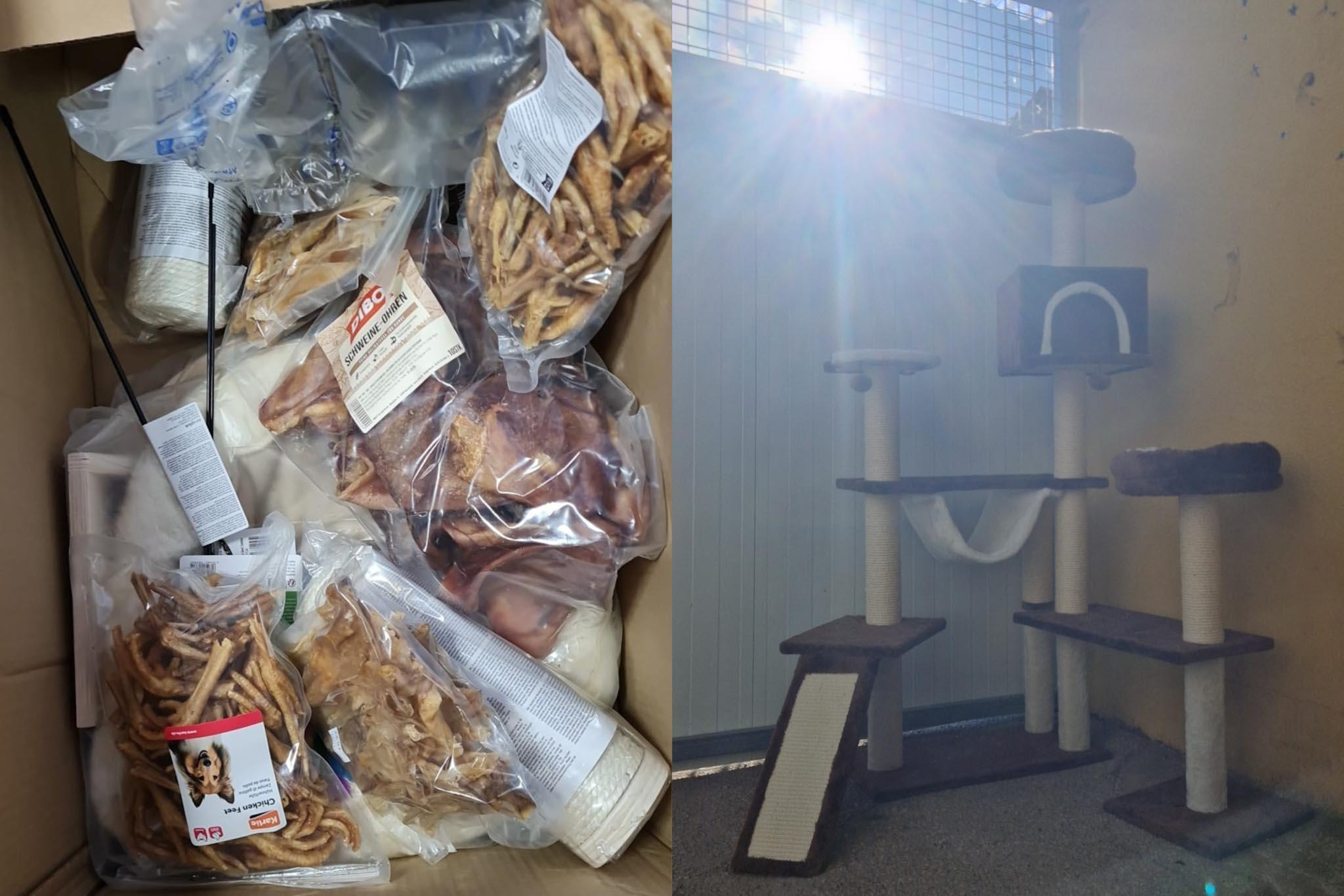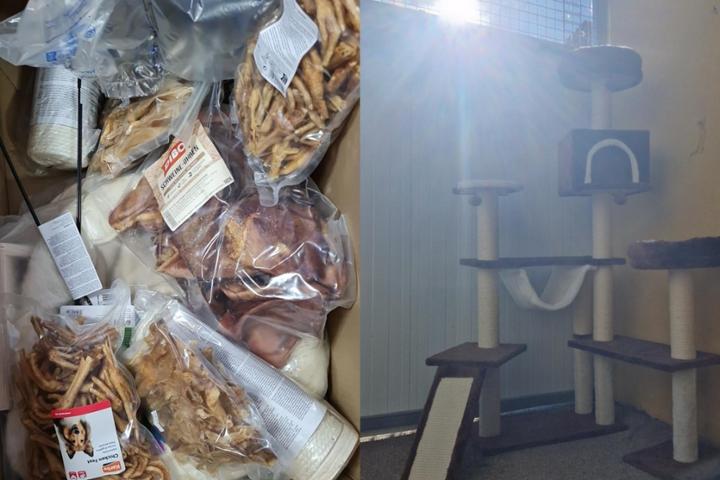 Los regalitos de los Reyes Magos para el RMAC. Unos cuantos snacks para los perretes, un rascador y juguetes para gatitos. Se puede ver el vídeo en: https://www.instagram.com/reel/DTH_Nh5COk8/?igsh=ZXBkbWVlcGp2YnB6