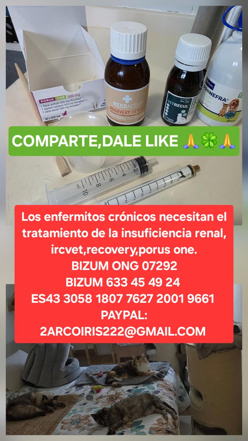 Los enfermitos crónicos del ClanCatslovers vuelven a necesitar los tratamientos para la insuficiencia renal...son 4 ,dejo la lista de amazom donde encontrareis los productos y formas de Donar,muchas gracias.