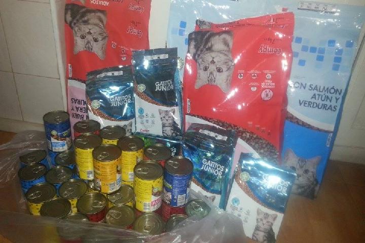 Enviamos comida mensualmente para los gatitos de Noelia. Ella es una particular y cuida de una colonia de mas de 20 gatos callejeros, les da de comer, los castra, vacuna y los lleva al vete cuando estan malos. Tambien les busca hogares en los que les quieran mucho. Su pagina: https://www.facebook.com/LosGatitosDeNoelia?fref=ts