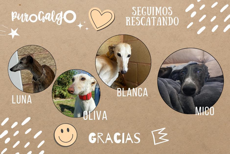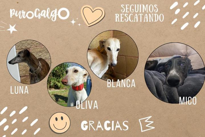 Seguimos rescatando vidas! Febrero es un mes horrible para nosotras y casi sin poder porque las casas de acogida escasean hemos podido ayudar a LUNA, OLIVA, BLANCA Y MICO.