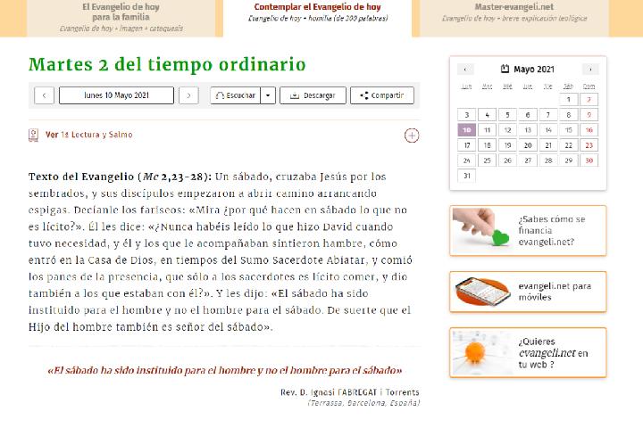 La misión de evangeli.net es difundir el Evangelio por Internet. Publicamos en 9 idiomas (español, catalán, inglés, francés, portugués, italiano, polaco, alemán y chino) y llegamos a más de 100.000 personas en todo el mundo. Ofrecemos tres servicios: El Evangelio del día meditado, el Evangelio para la familia con catequesis y el Evangelio con un comentario teológico. Cumplimos ya 12 años en Teaming ¡Os agradecemos el apoyo a los Teamers durante tantos años!