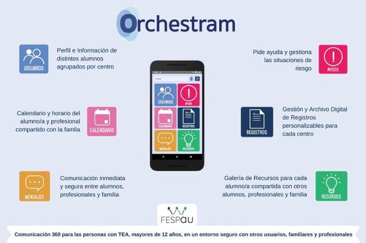 El autismo se caracteriza por las dificultades en la comunicación y la interacción social. ORCHESTRAM ofrece la posibilidad de comunicarse en un entorno seguro a niños y niñas con autismo, permitiéndoles mejorar sus relaciones sociales y sus habilidades comunicativas. A su vez ORCHESTRAM también facilita la comunicación entre familias y profesionales permitiendo el seguimiento de la evolución de los niños y las niñas con TEA. GRACIAS por ayudarles a mejorar su calidad de vida.
