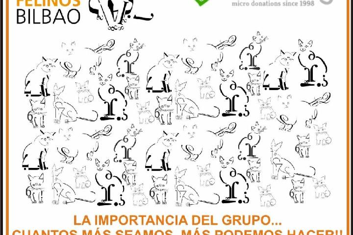 En felinos Bilbao sacamos de la perrera aquellos gatos que necesitan atención veterinaria, reubicándolos en nuestro refugio o en casas de acogida. Nos hacemos cargo de todo los gastos veterinarios y no contamos con ningún tipo de subvención. Veterinarios, medicaciones, cirugías, pienso,Latas, arena,alquiler del local, electricidad, agua , seguros.Son muchísimos los gastos mensuales y cada euro ayuda a continuar con la tarea. Tu euro puede marcar la diferencia ¡¡Gracias por tu euro!!