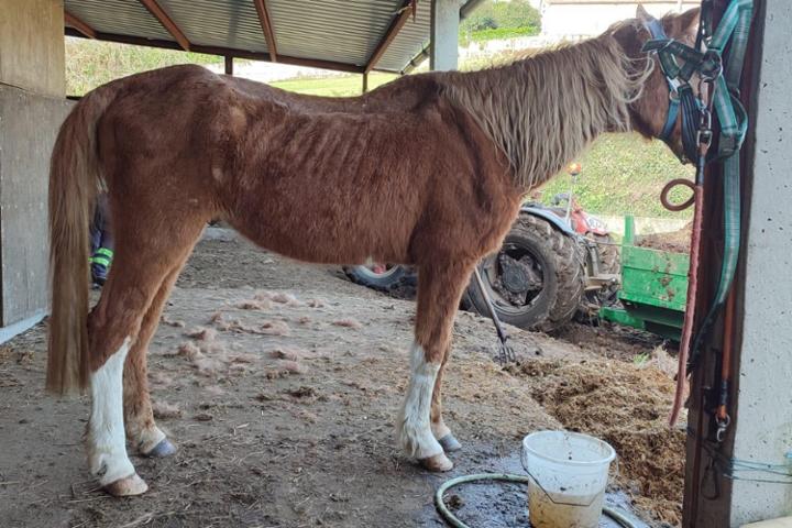 Hablamos hoy de Sirito! Tenéis mucha info y fotillos de como va ahora mismo, pero me encontré esta foto y buff. Quien lo ha visto y quien lo ve. La alimentación es cara pero compensa y mucho! Sirio es un caballito de hípica que necesitaba un lugar donde vivir su jubilación. Sirio llego con 36 años (ahora 38) y estaba ligeramente bajo de peso. Al llegar recupero un poco pero por un accidente, cayó a un agujero lleno de agua. Conseguimos sacarlo con una grúa. Esta caída le lesionó una pata trasera, la derecha. Y al obligarlo a estar encerrado y no querer comer hierba seca, además de errores nuestros a la hora de alimentarlo. Bajo mucho de peso y llego a estar como en la foto.