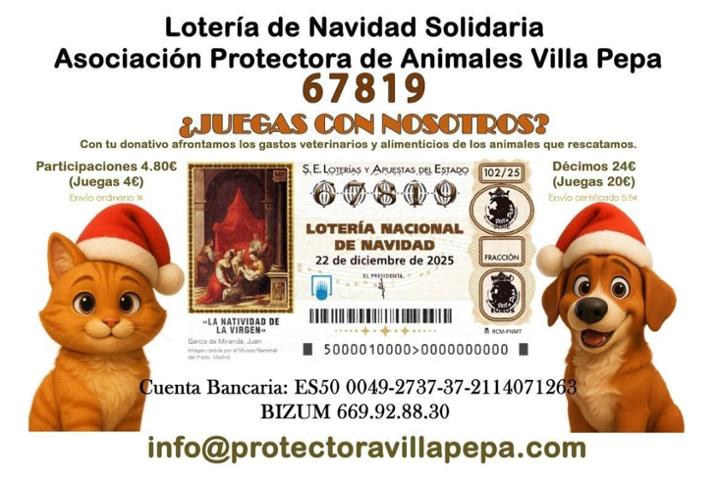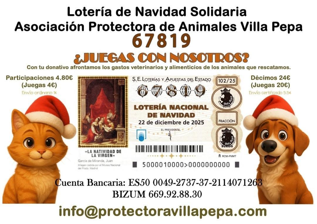 Los beneficios del 20% obtenidos con la venta de lotería serán destinados íntegramente a afrontar los gastos veterinarios y alimenticios de los animales que rescatamos.