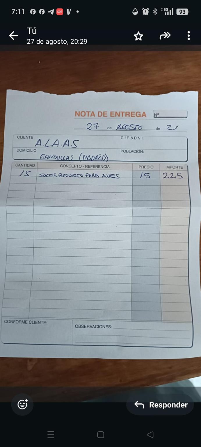 Adjunto factura Agosto que por error de la plataforma creo que no se publico. Ningún mes desde hace años les ha faltado grano y en parte es gracias a vosotros.