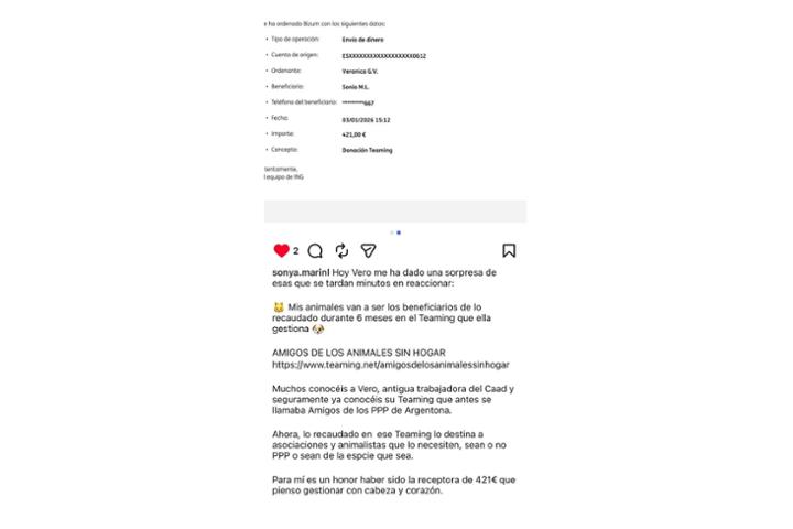 Os paso captura para donde fue la última recaudación. muchas gracias por seguir ahí ayudando a los animales.