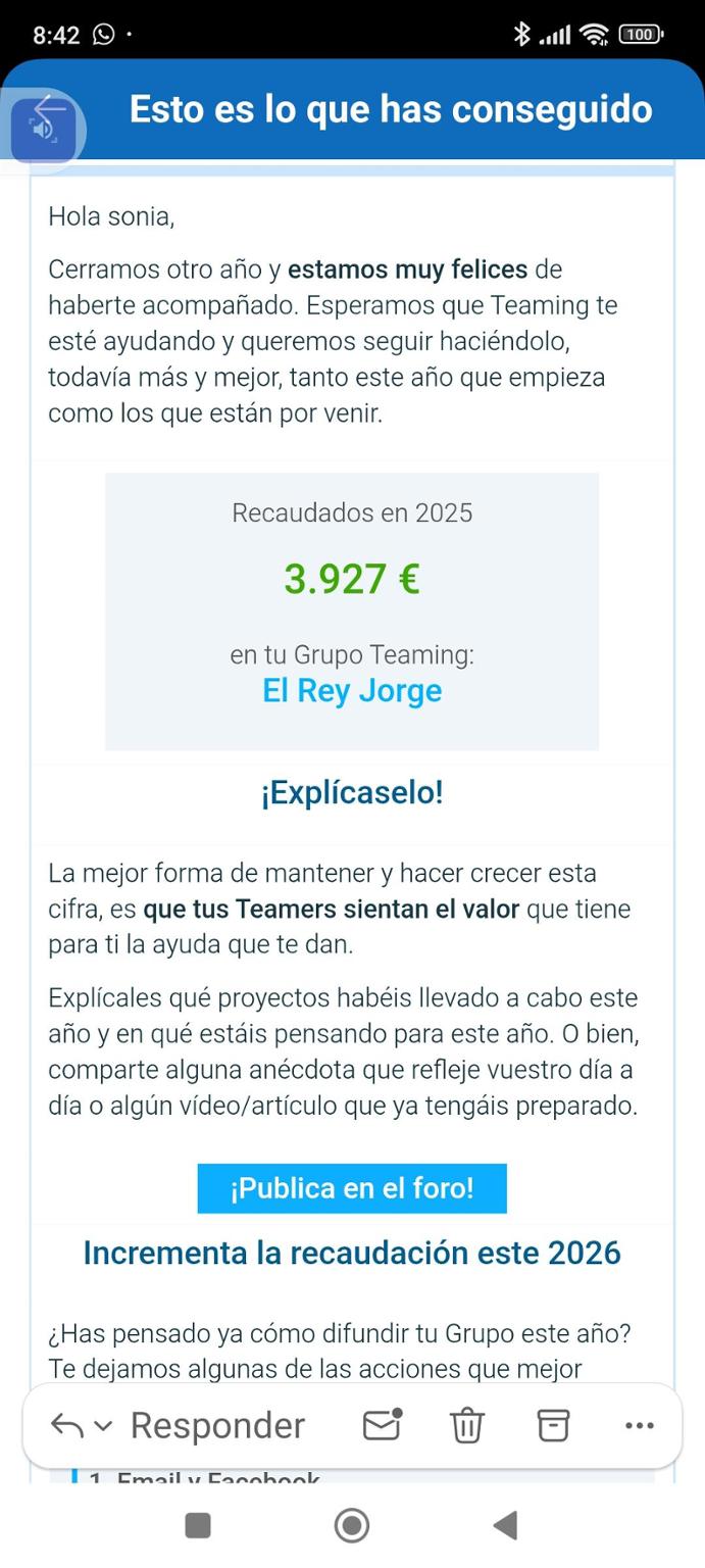 Gracias a mis queridos teamers este dinero se ha conseguido para pagar terapias para Jorge, vuestro euro es muy importante, gracias por ayudar a mejorar la calidad de vida de Jorge, ojalá lleguemos a ser muchas más, para conseguir muchas cosas juntos.