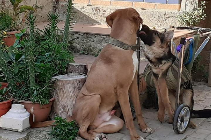 Aquí ya tiene 8 meses con el carrito provisional. Como va creciendo necesitamos uno que aguante su peso