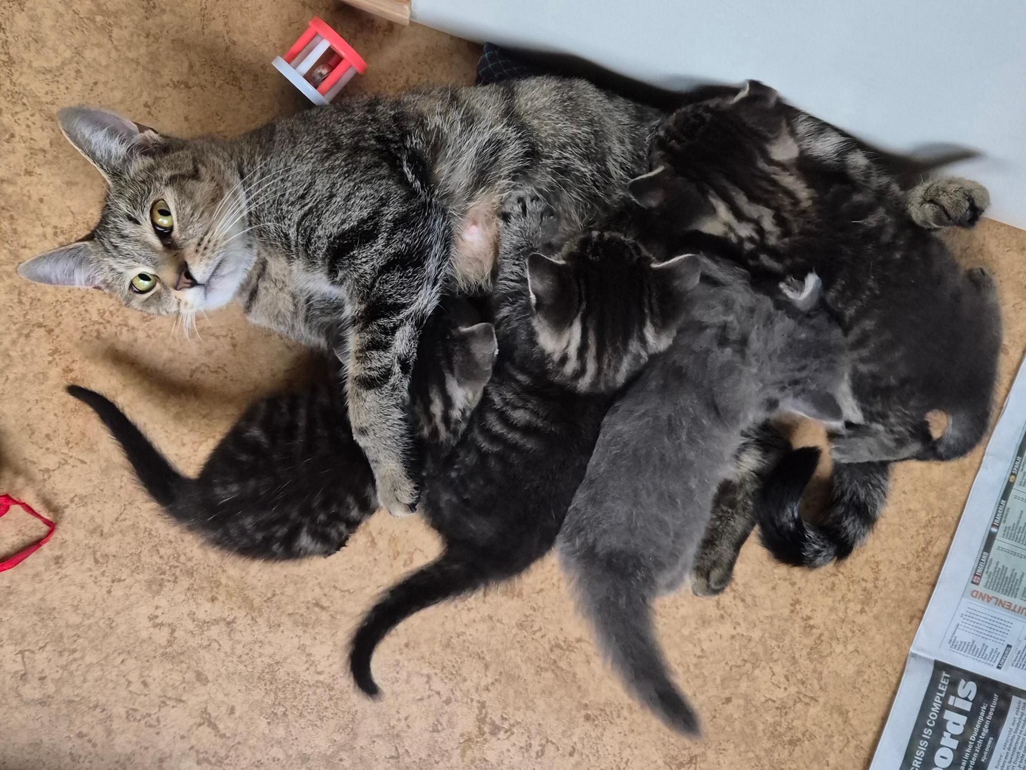 Het zijn zo'n lieve poezekopjes en mama poes "" Babs"" is een super mamsie
